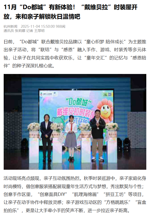 凤凰新闻、潮新闻、杭州新闻等媒体报道Do都城“戴维贝拉”时装屋升级开放