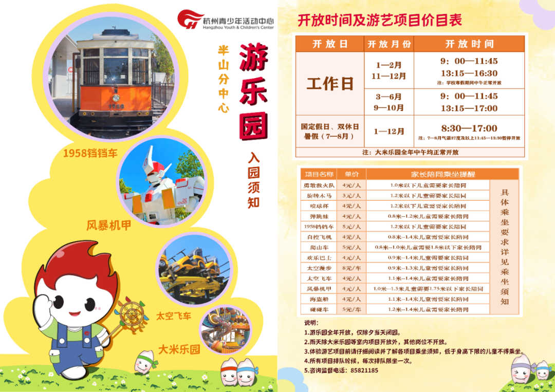 3.体验游艺项目前请仔细阅读并了解各项目乘坐须知,低于身高下限的儿童不得乘坐。
