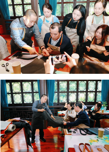 在周老师的指导下,学员们开始了亲手制作的环节。针线在指尖穿梭,皮料在手中渐渐成型。制作过程中,周老师耐心指导每个细节,学员们互相交流缝制心得,现场洋溢着专注而愉悦的氛围。