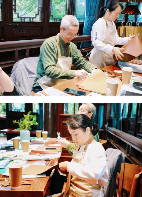 杭州非遗周氏皮雕技艺项目代表性传承人、拱墅工匠杭州市文旅行业能工巧匠周传炳老师带领大家走进皮艺世界。周老师不仅讲解了皮具制作的基本技法,更分享了皮艺背后的文化渊源。学员们沉浸在皮艺的历史长河中,感受着这门古老手艺的独特魅力。