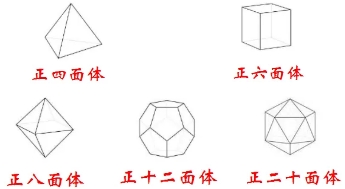 柏拉图体:由一种正多边形构成各面的立体图形,被数学家们称为最有规律的立体结构,数学家证明了世上只存在以下五种柏拉图体——