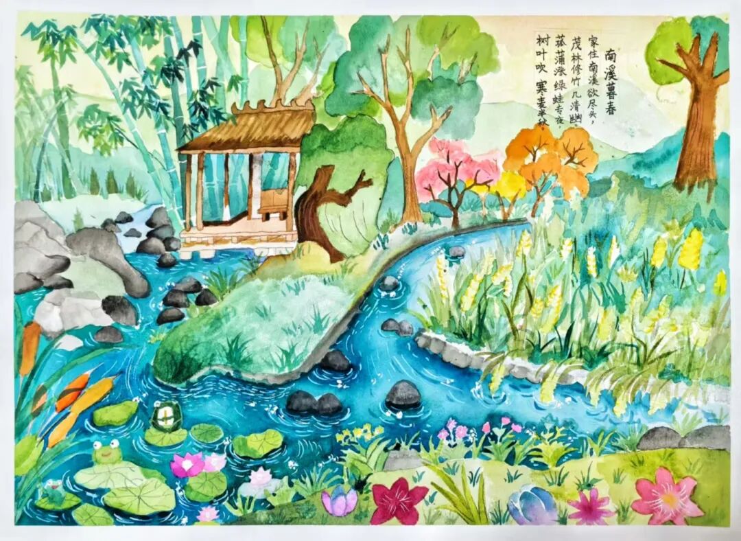 每一笔丹青都守护青绿本色,每一句诗词都滋养文明根基,小朋友们在诗画交融中读懂山水相依的智慧,践行生态保护的承诺,让我们继续欣赏他们的优秀作品吧!