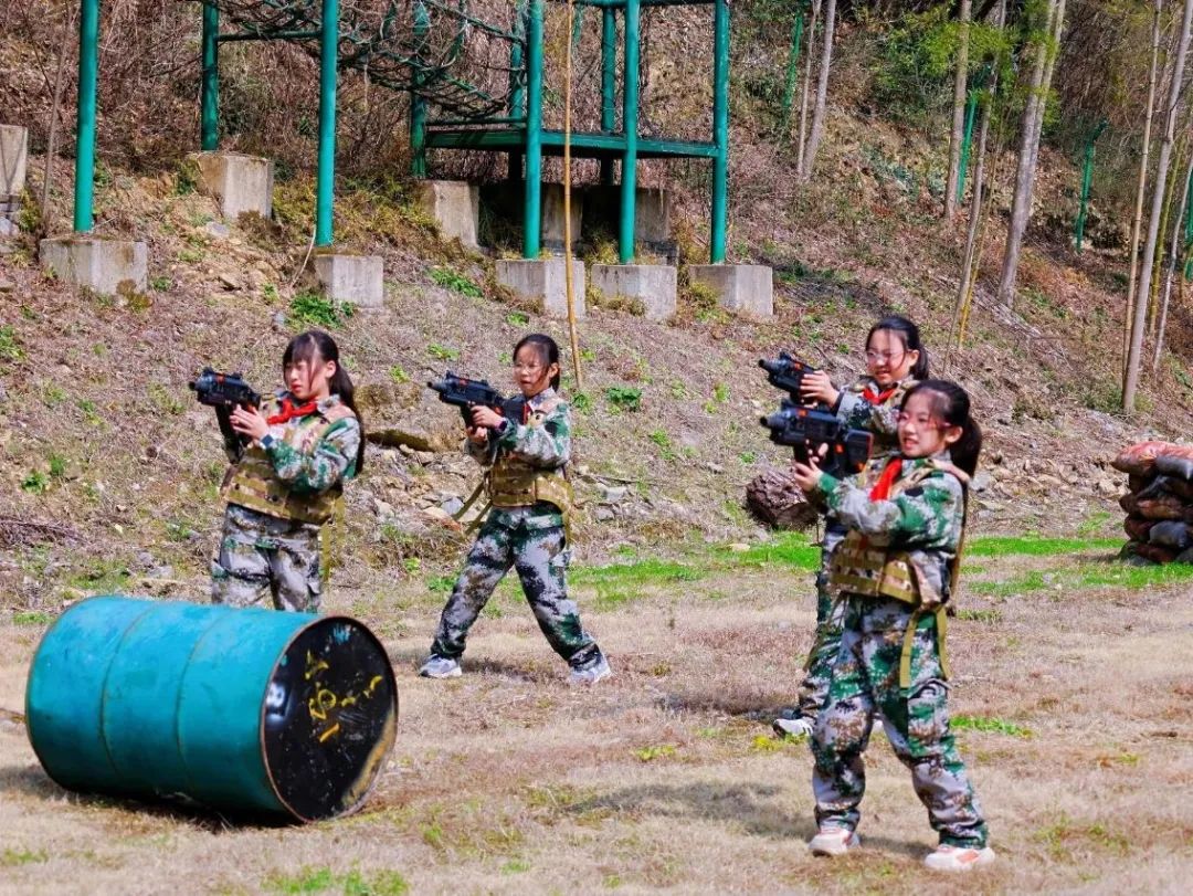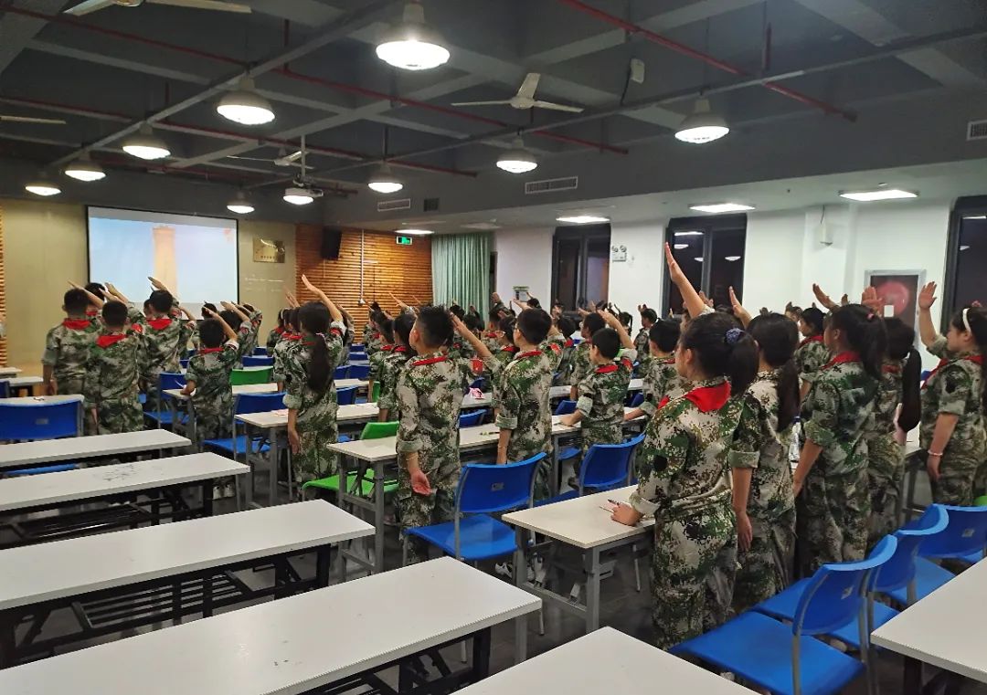 暑期,杭州(国际)青少年洞桥营地组织开展“红领巾奖章”特色章(“国防章”“劳动章”“社会实践章”)争章主题三日营活动。