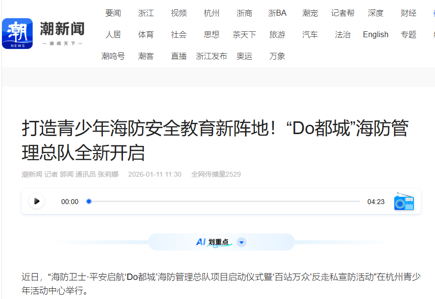 中国网、潮新闻、杭州网等媒体报道“Do都城”海防管理总队开放