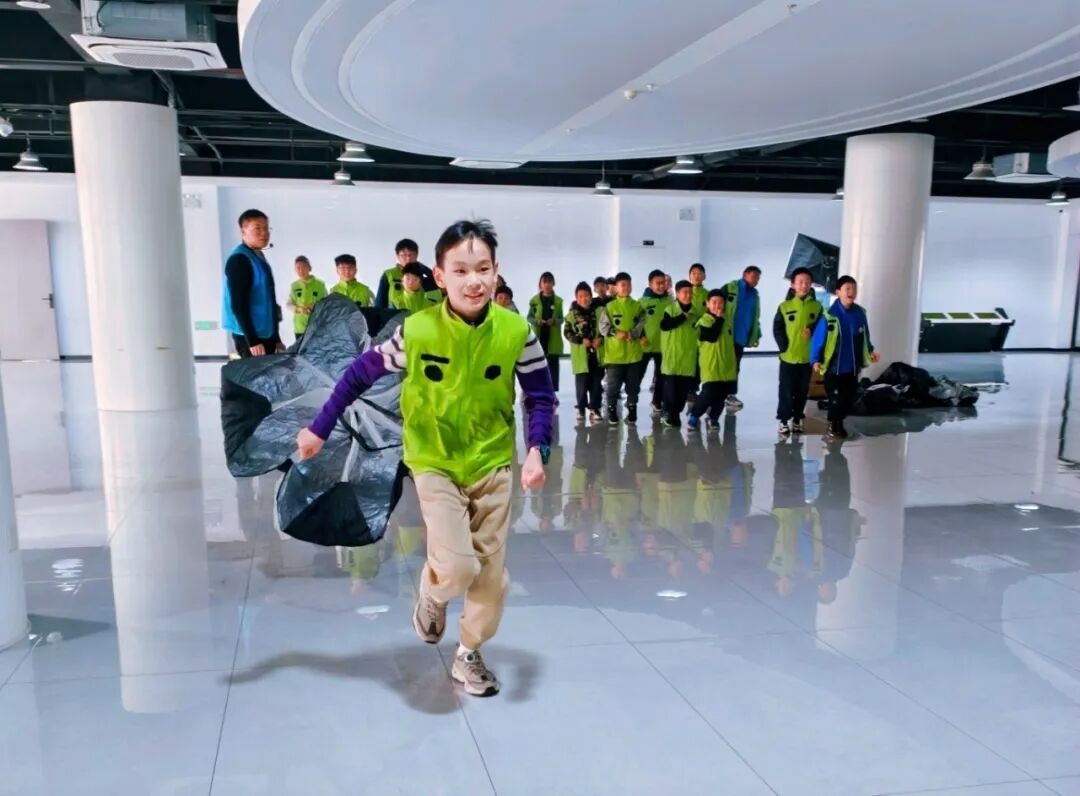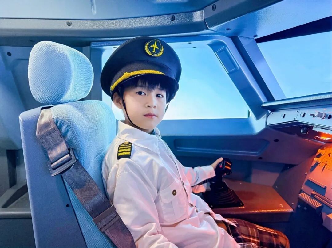 下午,视野从“深空”转向“深蓝”。“海韵航图”课程带孩子领略大国海疆的壮阔。重头戏登场——在专业的飞行学习之后,每个孩子化身“小机长”坐进1:1高仿A320飞行模拟舱,亲手操纵仪表盘,完成一次从起飞到降落的完整飞行。随后,孩子们深度体验航空阻力伞,在奔跑与欢笑中理解飞行的“减速密码”。