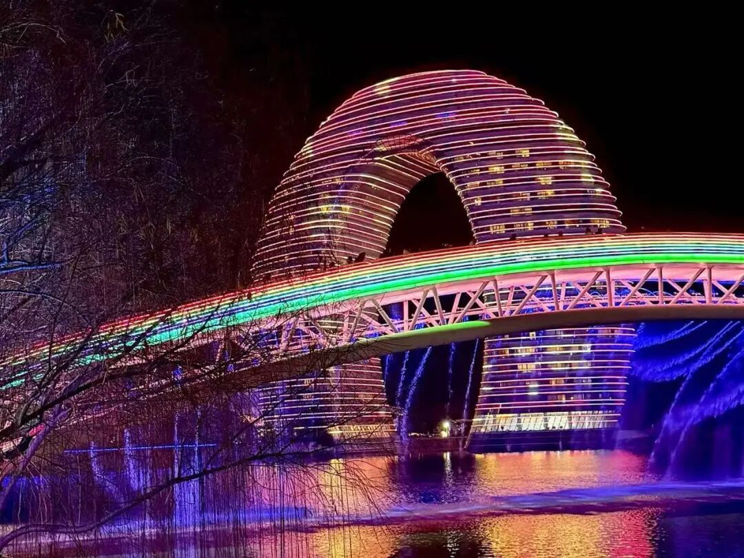 在西山漾景区,亲眼见证无人机编队的空中芭蕾,与春晚同款宇树机器人近距离互动,观看人形机器人、机器狗群舞表演。