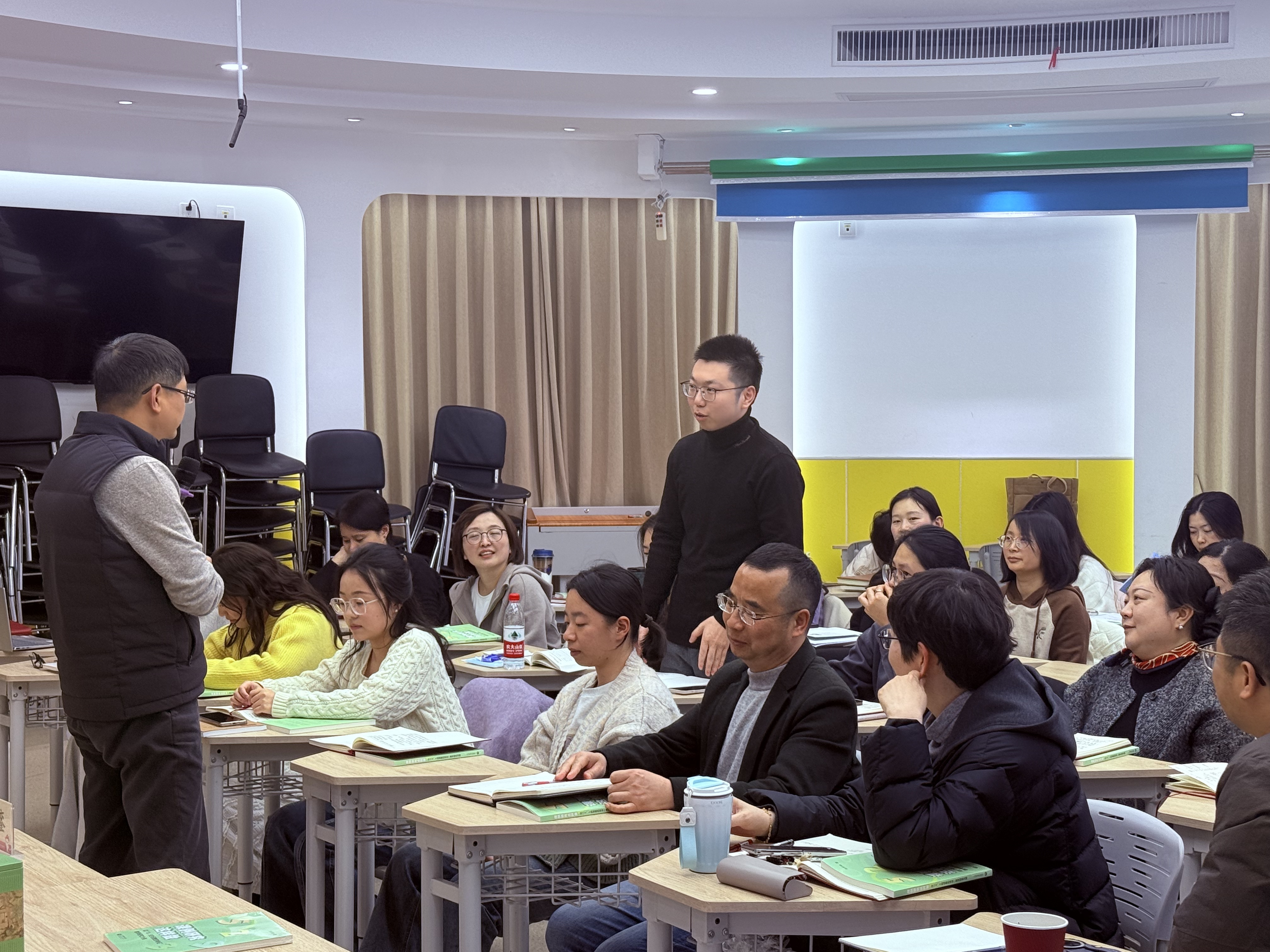 在互动答疑环节,教师们结合自身在课题选题、研究流程、材料打磨等方面的困惑进行提问。吴老师一一耐心解答,结合具体案例指导大家通过小切口试点验证方案,让研究真正服务于教学,让变革持续优化。