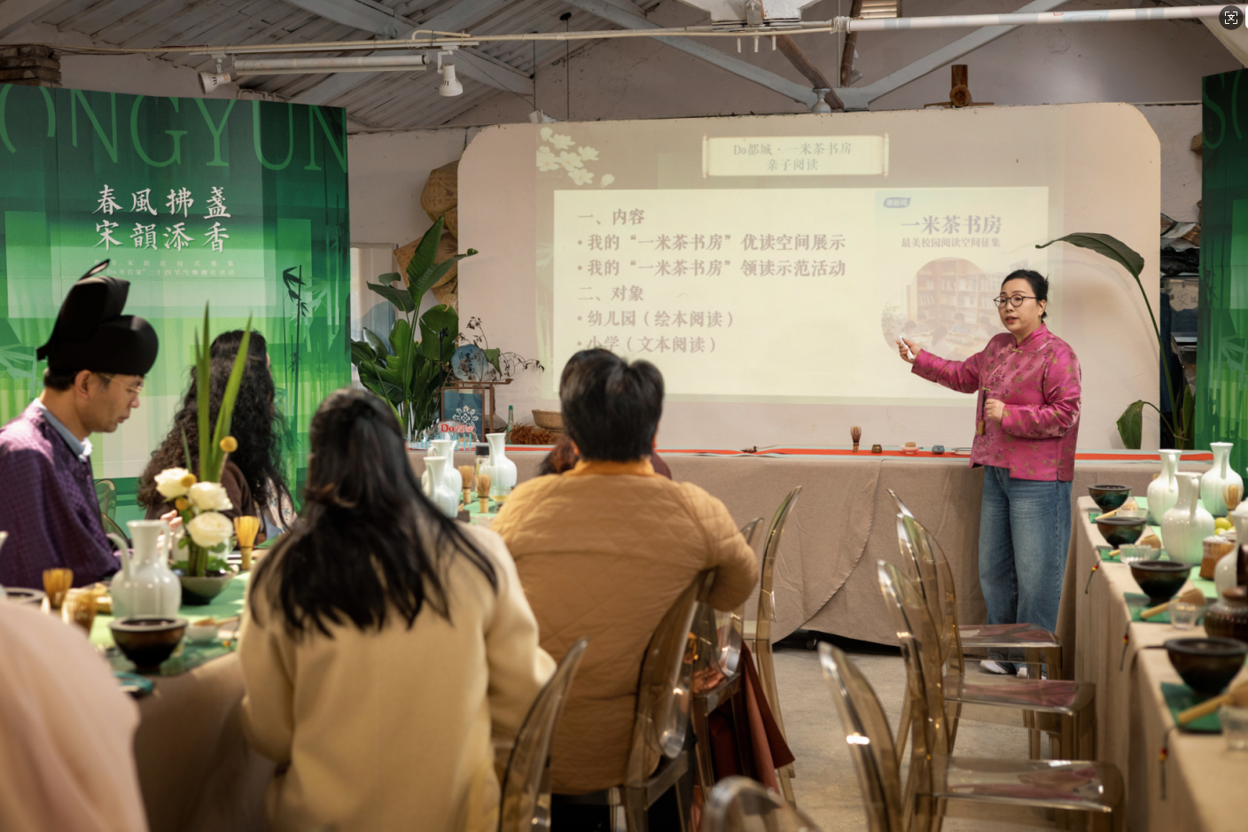 活动同步启动Do都城·一米茶书房”项目项目杭州青少年活动中心体验部部长,“Do市百家”成人学院院长庄雪珍杭二中原教导主任、特级教师陈婕杭州“点茶”非遗传承人徐志高此时艺术空间主理人刘岩联合发起,以“净、雅、养”为核心,融合点茶、节气文化与家庭教育,打造耕读传家的沉浸式家风空间。陈婕老师现场开讲,带领嘉宾品读东坡诗词,从“人间有味是清欢”中感悟豁达处世的生活智慧。