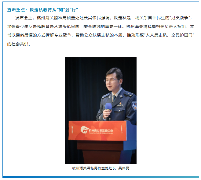 《那客说反走私》(大众版)的出版,进一步丰富了全民国家安全教育载体与内涵,也为浙江“两个先行”背景下的青少年思想教育注入了鲜活力量。