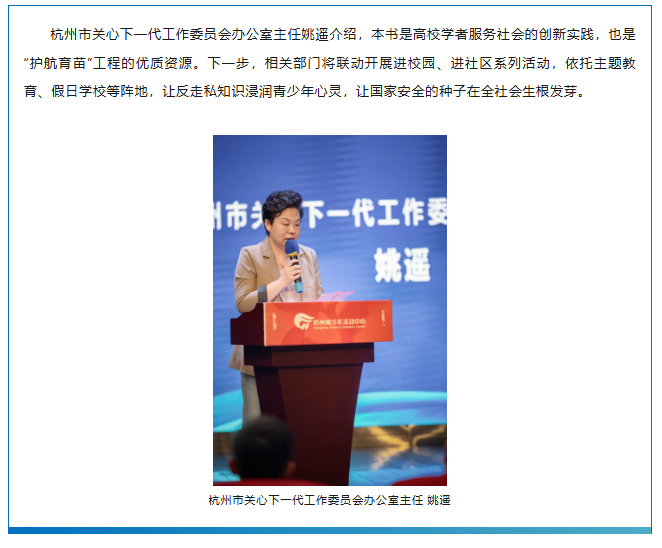 在第十一个全民国家安全教育日到来之际,4月11日,《那客说反走私》(大众版)新书发布会在杭州青少年活动中心“Do都城”少儿社会体验馆举行。本次活动由浙江省公安厅海防总队、杭州海关缉私局、杭州市政府反走私办、杭州市关心下一代工作委员会指导,杭州师范大学美术学院和杭州青少年活动中心联合主办。相关部门负责人、教育界代表及大中小学师生代表齐聚一堂,共同见证这部面向全社会的反走私科普读物的正式亮相。