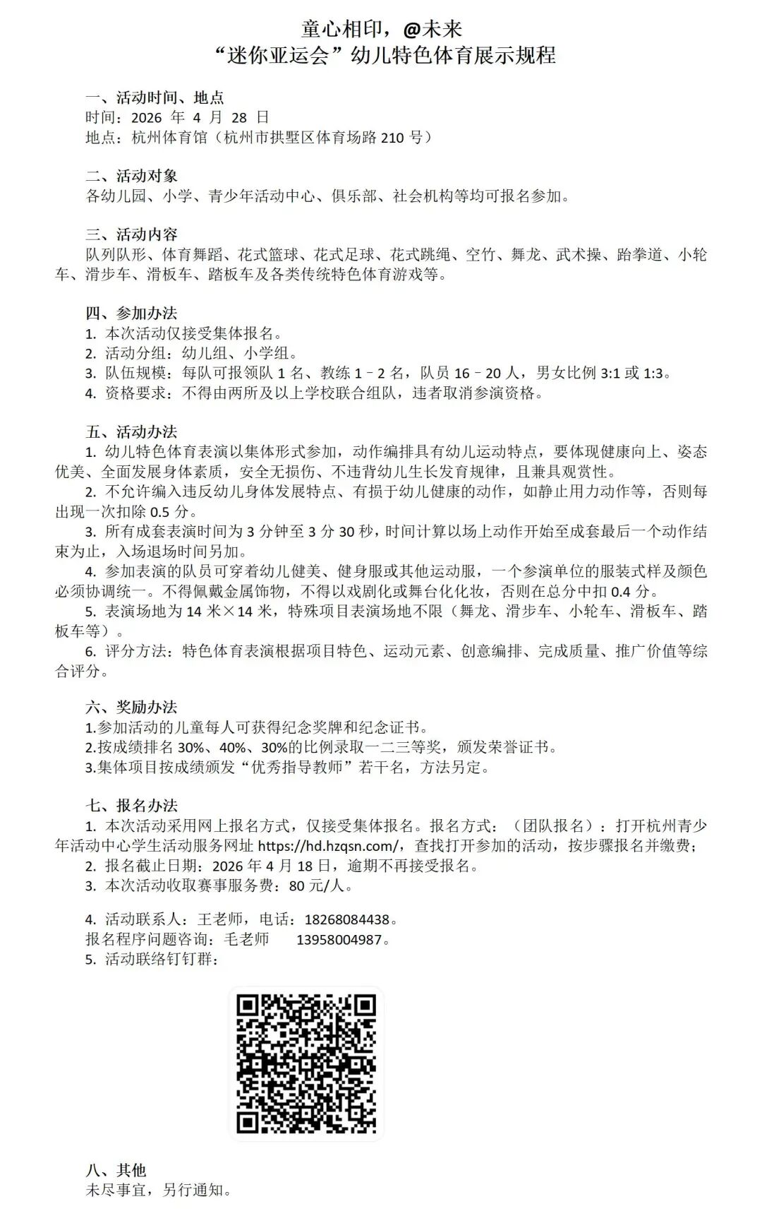 童心相印,@未来 2026杭州“迷你亚运会”幼儿特色体育展示规程