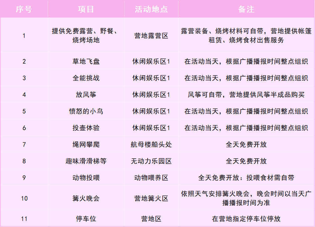 (包括当天9:00至第二天早8:00期间入园门票费、场地管理费、保险费;儿童身高在100cm及以下免门票)