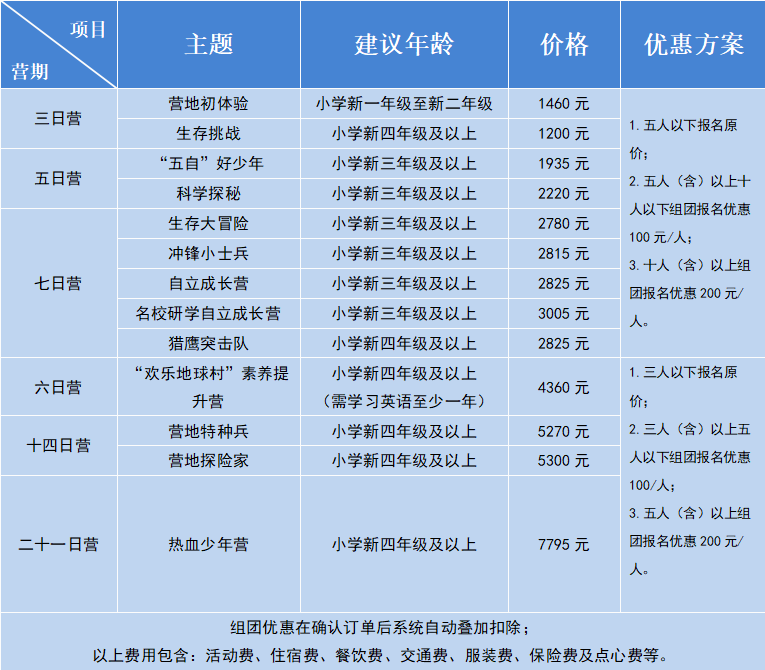 (费用包含:活动费、住宿费、餐饮费、交通费、保险费。)