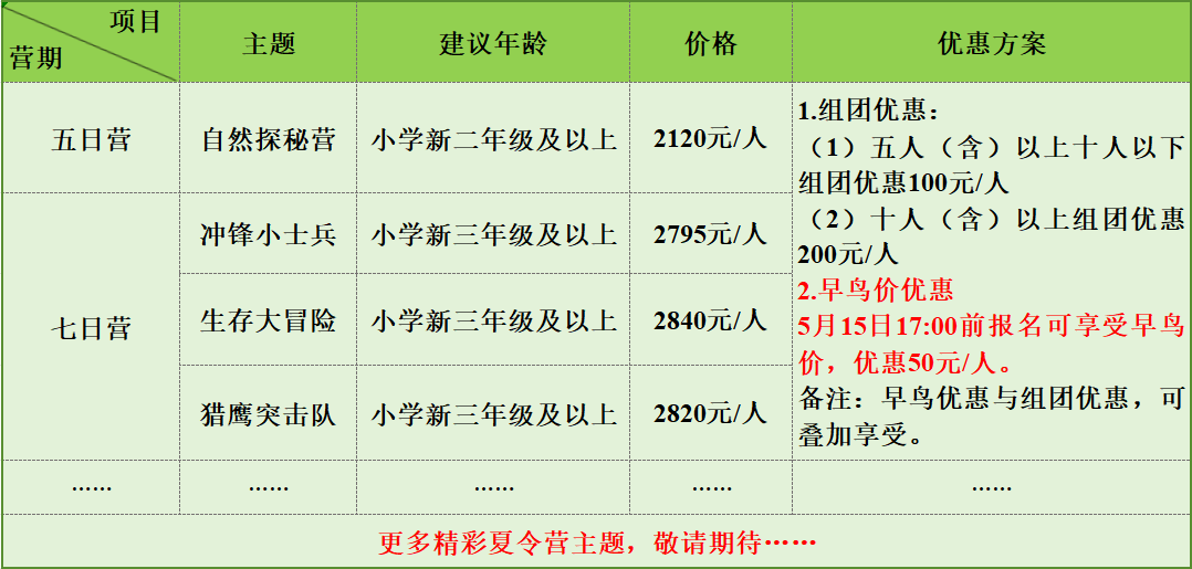 备注:早鸟优惠与组团优惠,可叠加享受。