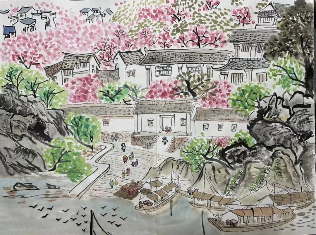 从王维诗中的“大漠孤烟直,长河落日圆”的雄浑壮阔,到李清照词里“争渡,争渡,惊起一滩鸥鹭”的灵动活泼,每一幅作品都承载着孩子们对古诗词的独特理解和对国画艺术的无限热爱。