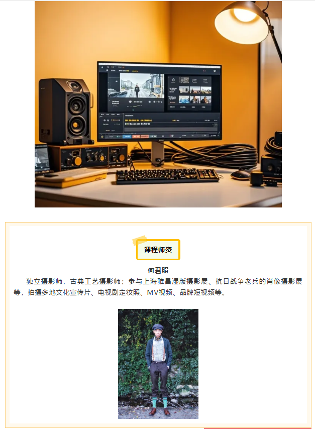课程系统培养影像叙事能力,聚焦构图法则、运镜逻辑与多场景拍摄技法。详解风光、人像、花卉及生活记录四大主题创作,融合电影级运镜技巧与光影艺术把控;贯通调色原理、剪辑节奏与配乐适配技术,全流程指导从策划到成片,培养多场景创作能力,提升作品艺术表现力与专业度。
