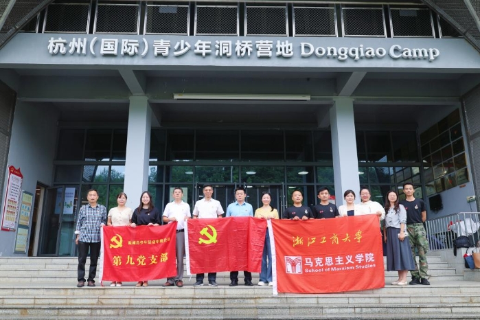 2025年6月9日上午,杭州(国际)青少年洞桥营地(以下简称“营地”)与浙江工商大学马克思主义学院(以下简称“马院”)在营地开展党建联建、大中小学思政共同体战略合作。马院党委书记、副院长郑群雄和党委副书记、纪委书记吴太贵等10余名党员参加活动。