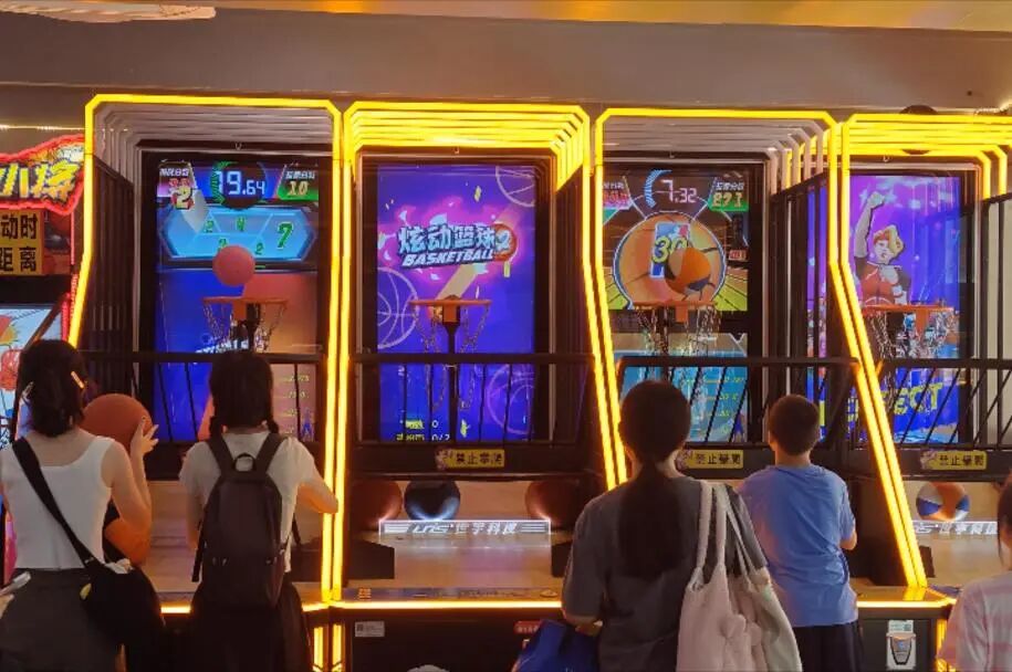 投篮机前,孩子可以化身“灌篮高手”,一次次将篮球投入篮筐,在挥洒汗水中感受运动的魅力,还能和小伙伴来一场投篮对决,看看谁才是真正的投篮小能手。