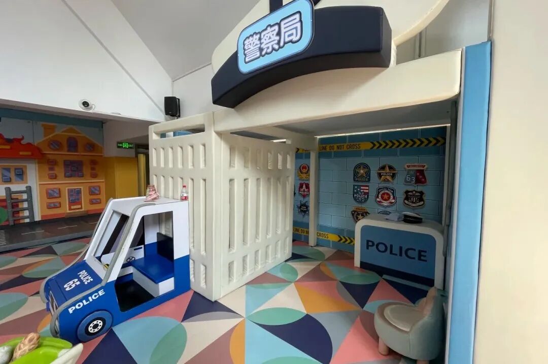 这里有“迷你诊所”、“警察局”、“消防站”、“超市”和“厨房”,孩子们可以穿上职业装,体验不同角色: