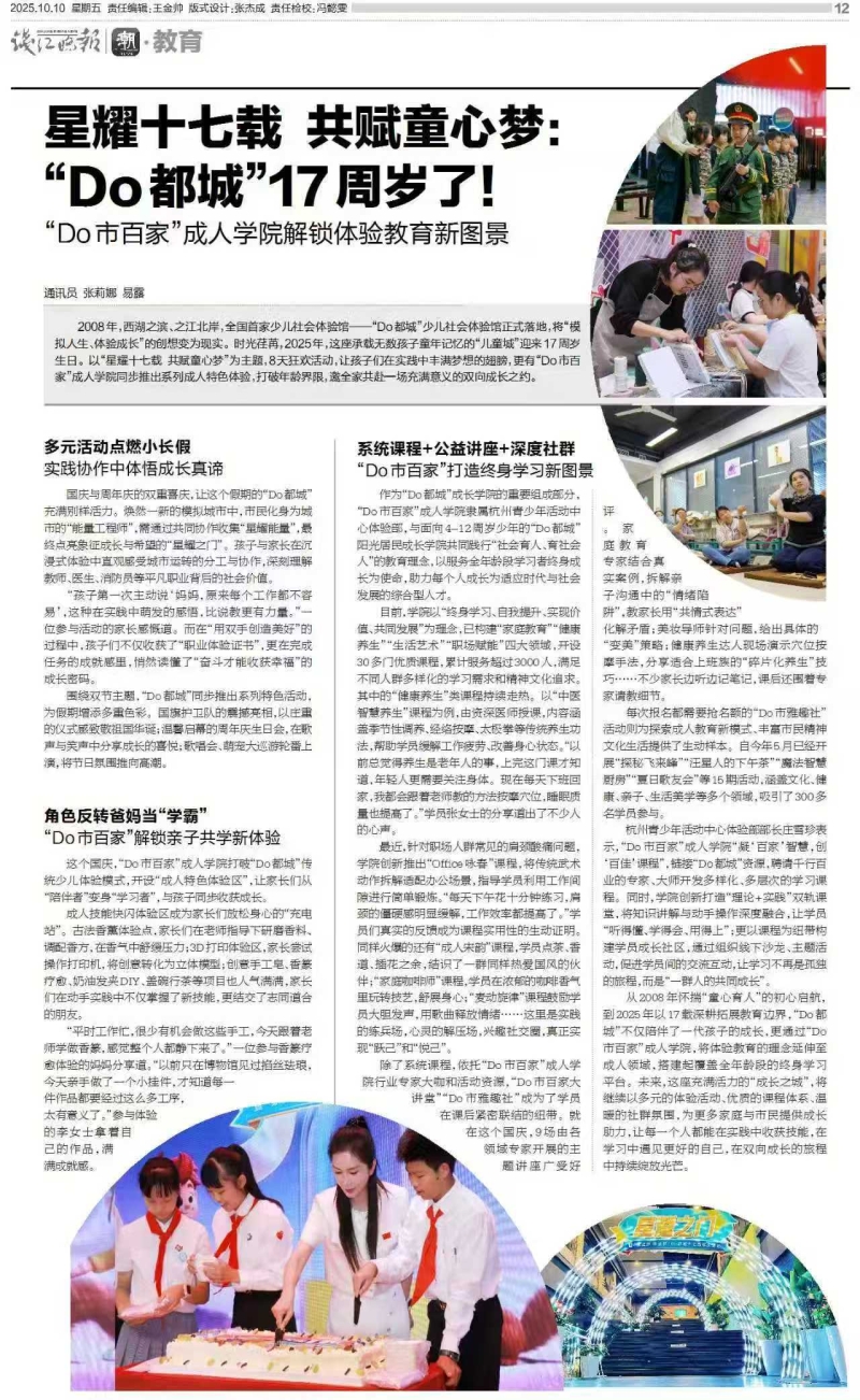 钱江晚报整版报道“Do都城”17周年庆活动及“Do市百家”成人学院